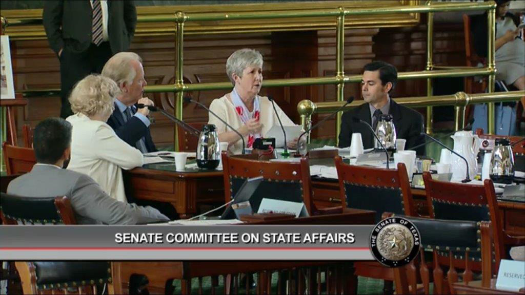 TCTA’s Ann Fickel (in center above) testified before the Senate State Affairs Committee on April 4, 2018, to urge continued support for the TRS defined benefit plan and increased funding for retirement benefits, TRS-Care, and active employee health insurance. The committee was charged with reviewing the structure and benefits of the Teacher Retirement System and monitoring the implementation of last session’s legislation that drastically revised insurance costs and benefits for retirees.